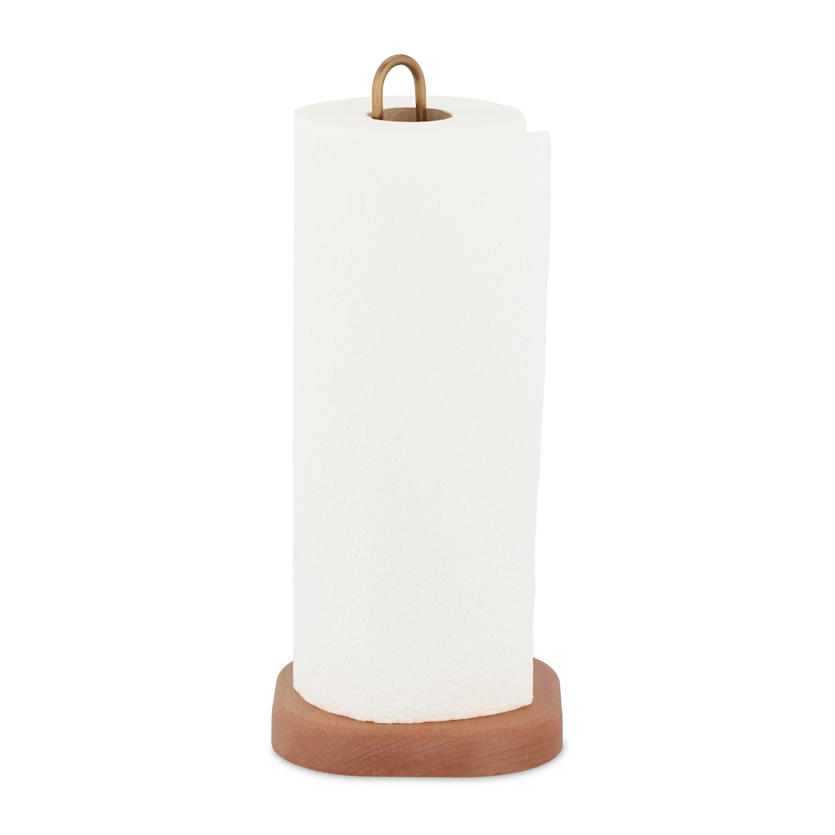 Relaxdays Küchenrollenhalter stehend, Buchenholz, eckig, Rollenhalter für Küche, HxBxT: 30,5 x 13 x 13 cm, natur/gold