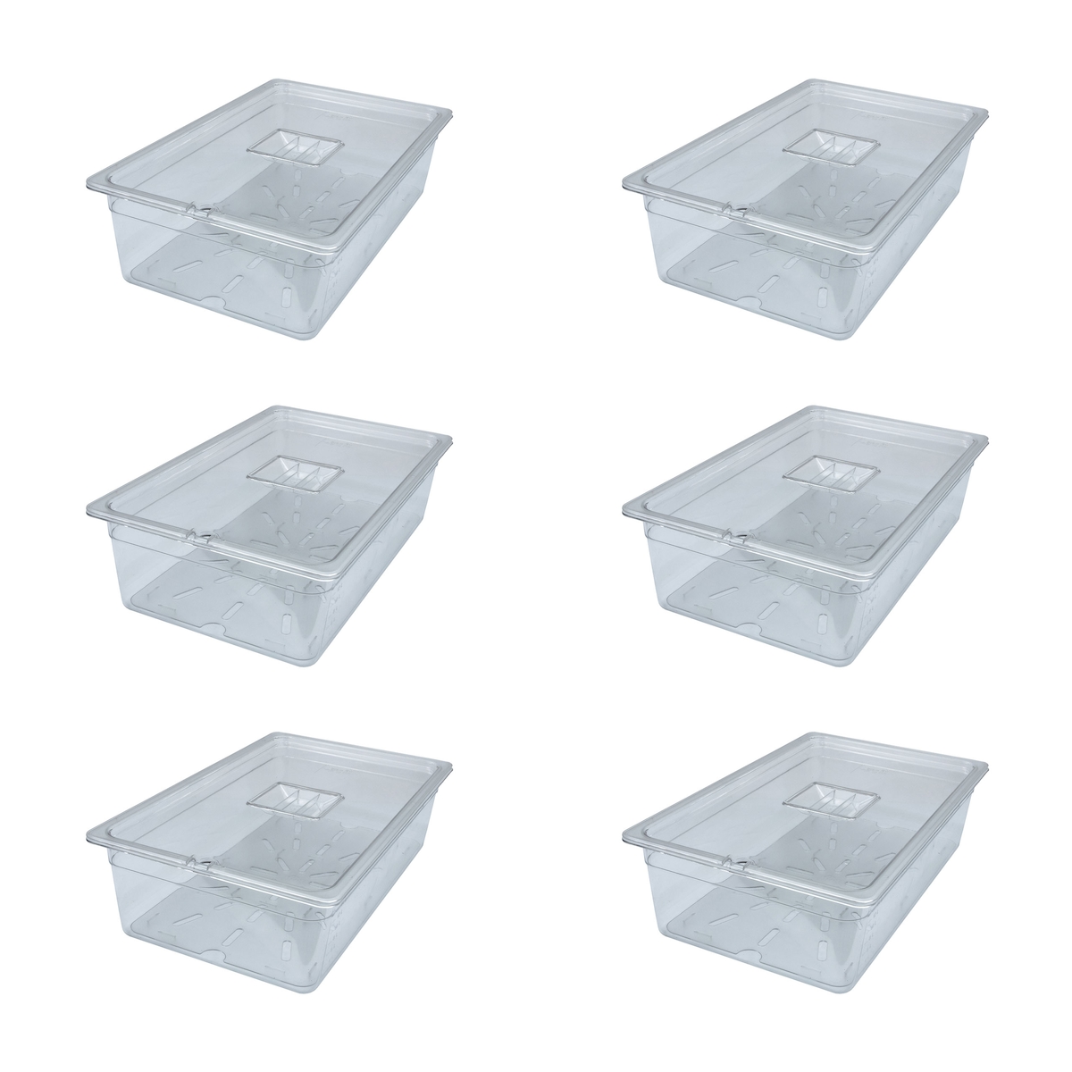 AcMax 6 Sets GN 1/1 Polycarbonat Behälter 21 Liter 150mm Deckel-Einkerbung und Abtropfeinlage
