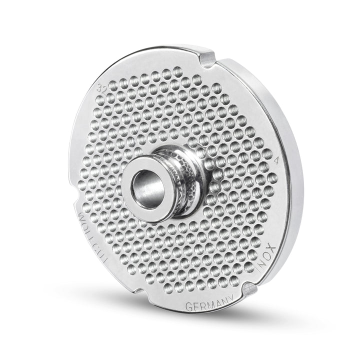 WOLFCUT Fleischwolfscheibe mit Nabe und 4 Nuten INOX-Stahl Größe 32 - 4,0 mm Bohrung kompatibel mit BIZERBA FW-N32 / ALEXANDERWERK 32 / OMEGA TH32