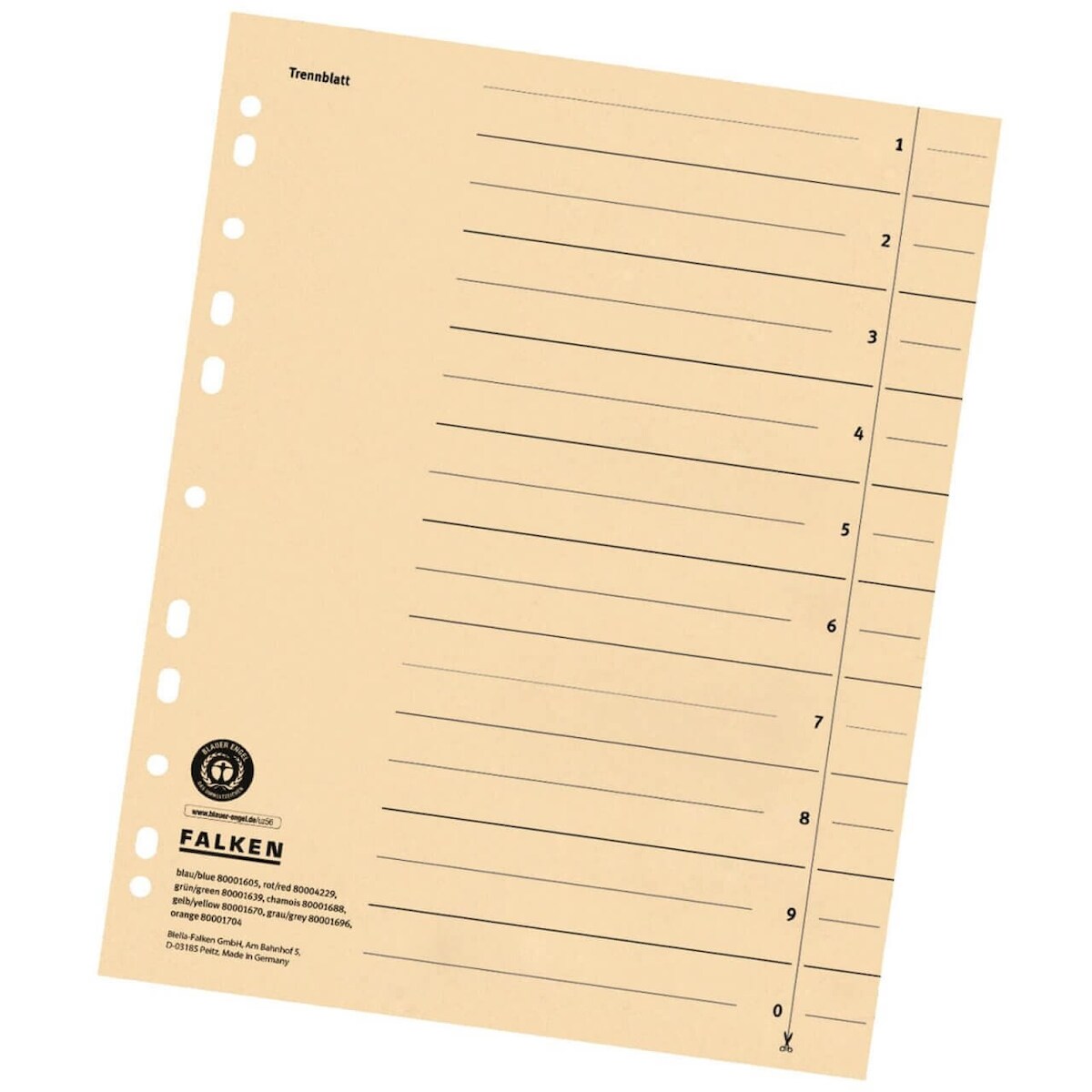 20 x FALKEN Trennblätter DIN A4 liniert Chamois