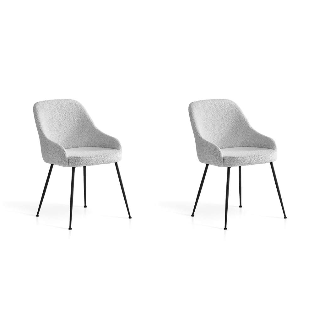 Set 2 sedie in tessuto bouclé e metallo bianco avorio 82×51×59 cm
