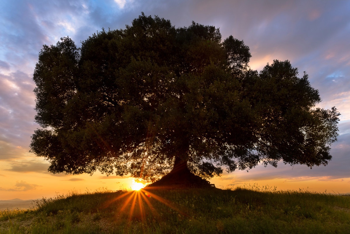 Fototapete PAPERMOON "Einsamer Baum", bunt (mehrfarbig), B:3,5m L:2,6m, Vlies, Tapeten