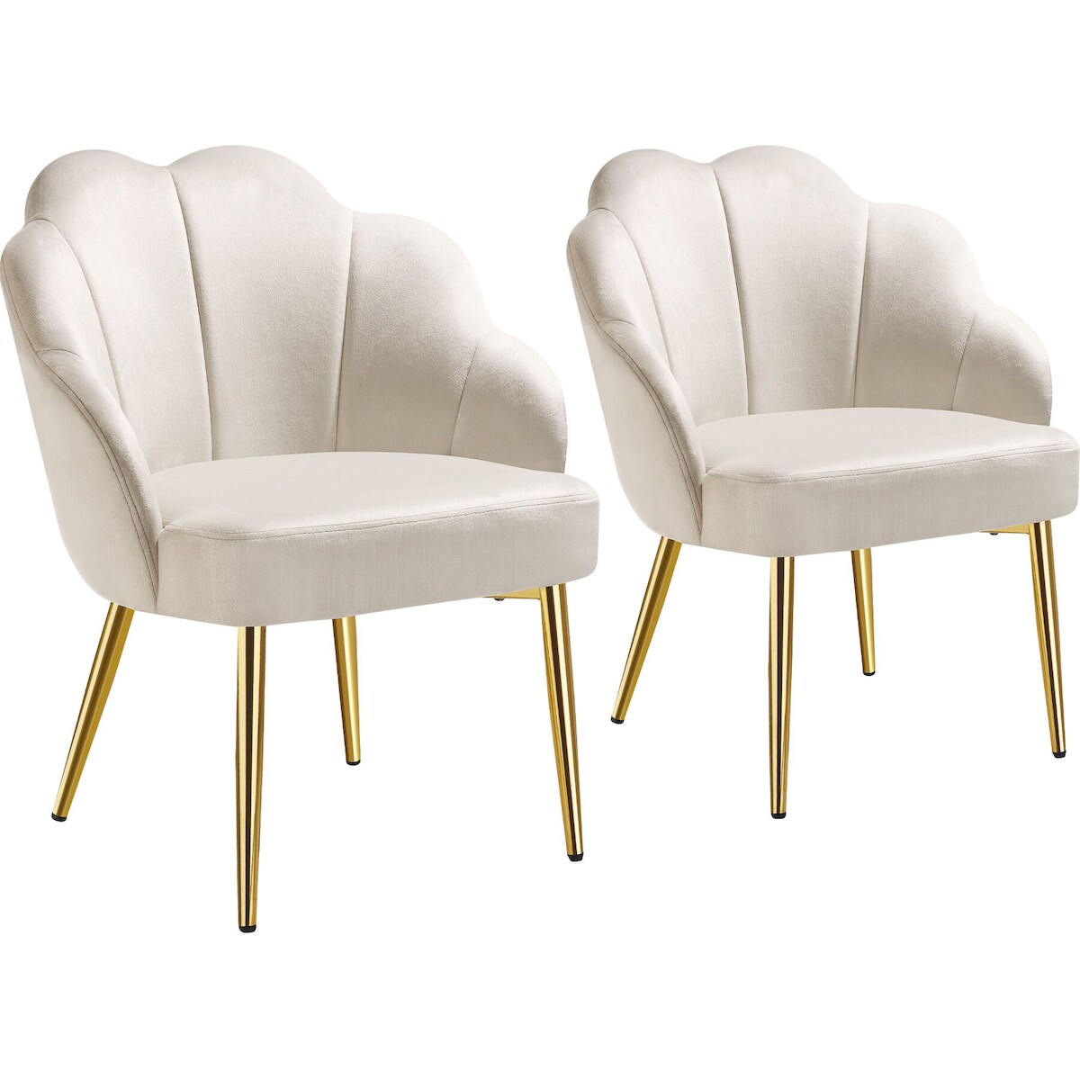 TECTAKE Cocktailsessel Hellen, gepolstert mit Samtbezug 2er Setcreme/gold