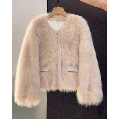 Per donna Cappotto Invernale Cappotto in Pelliccia Sintetica Caldo Confortevole Patchwork Tasca Bottoni Strappati Casual Blocco di colori Vacanza Uscire Weekend Regolare Scollo a V Vestibilit