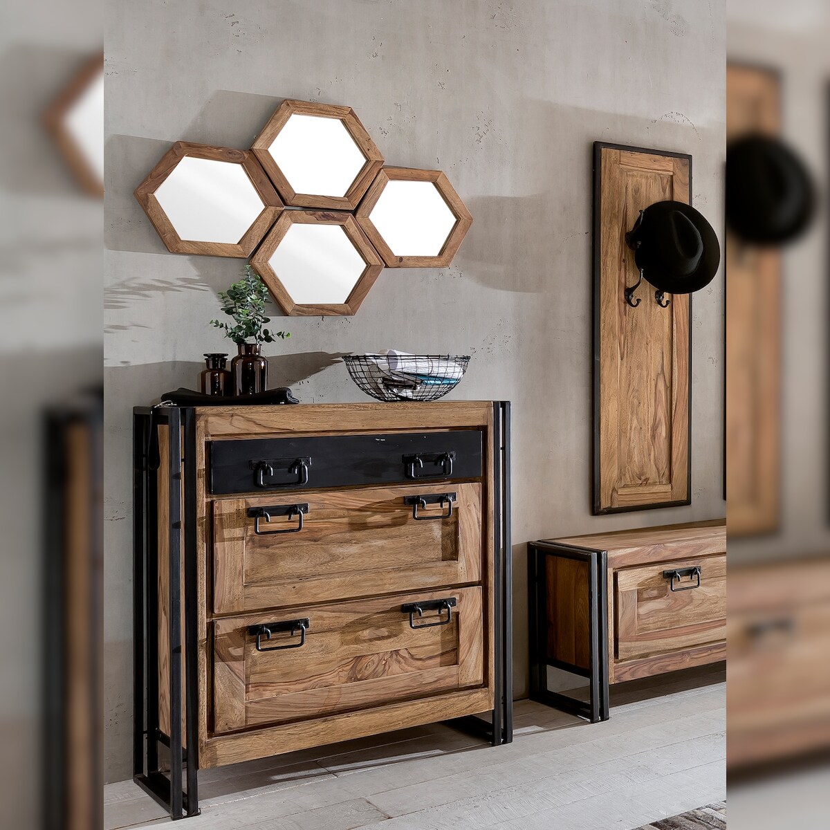 SIT Möbel Wand-Spiegel sechseckig | Akazie natur | B 34 x T 4 x H 35 cm | 09289-01 | Serie PANAMA