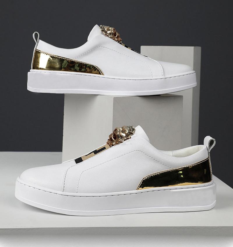 Fashion Men's casual shoes new high top shoes trend multi-purpose slatted lace-up flat shoes cowhide sneakers A6 cm white