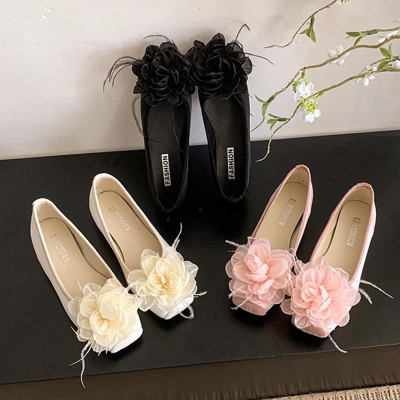 Flower Women Flats Shoes Casual Women's Sandals Fashion Loafers Shoes Elegant 2025 Summer Sneakers New Comfort Dress Woman Shoes cm apricot