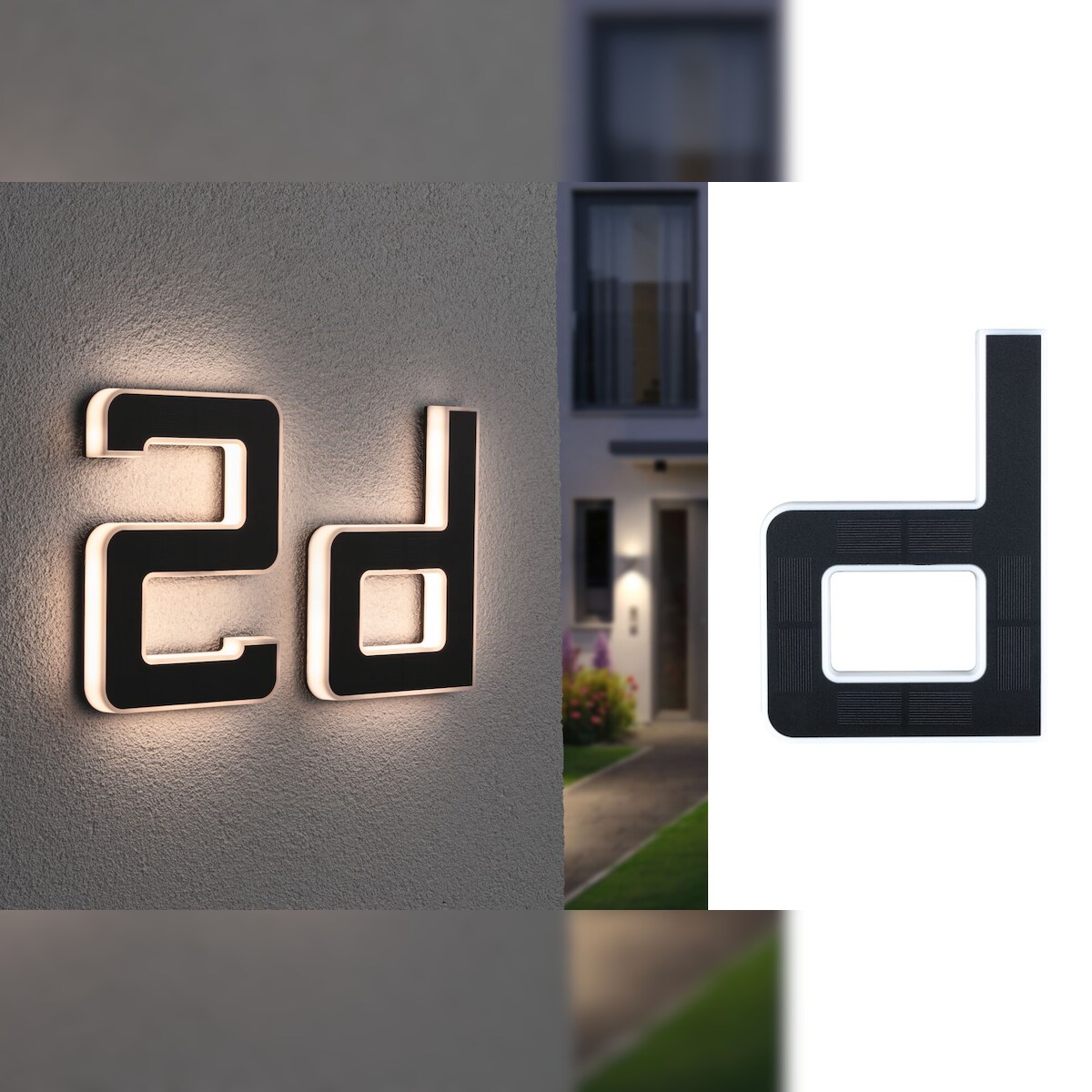 Paulmann Solar LED Hausnummernleuchte inkl. wechselbarer Akku Buchstabe D IP44 3000K 6lm Schwarz 94653
