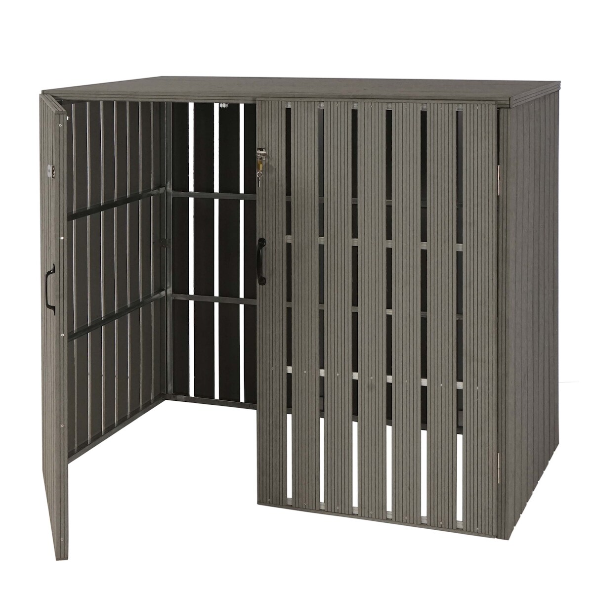 Mendler XL 2er-/4er-WPC-Mülltonnenverkleidung HWC-J28, Mülltonnenbox, Metall Holzoptik, erweiterbar ~ grau