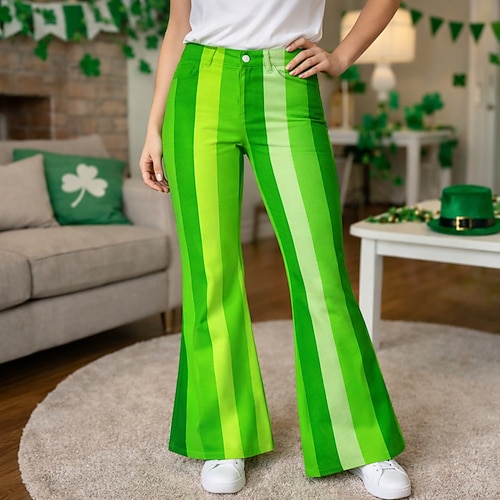 San Patrizio 2026 Retrò Vintage Anni '70 Pantaloni Pantaloni a gamba larga Hippie Disco Vita alta Costume Per donna Giorno di San Patrizio Feste Festival Adulti Pantaloni