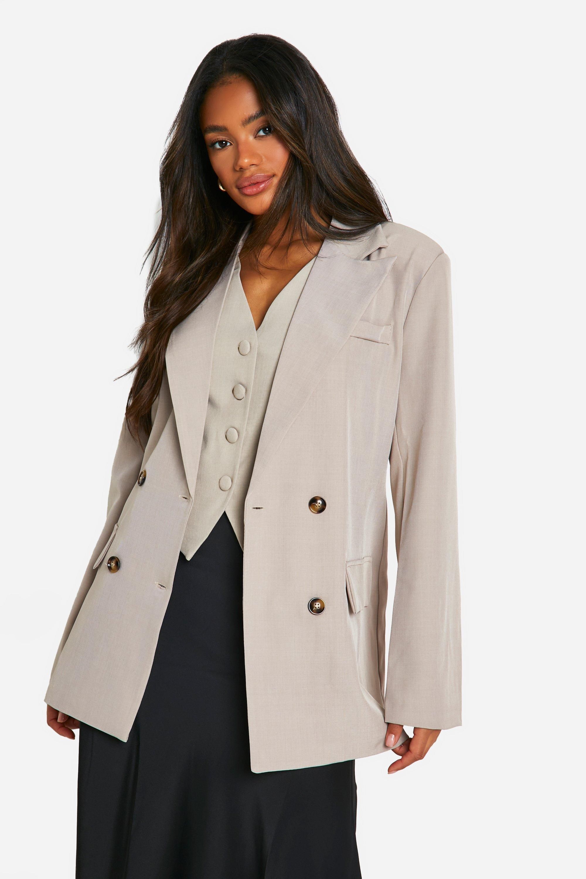 Boohoo Womens Textured Linen Look Boxy Oversized Blazer - Taupe - Size 10 UK | Boohoo Sale | Discount Designer Brands