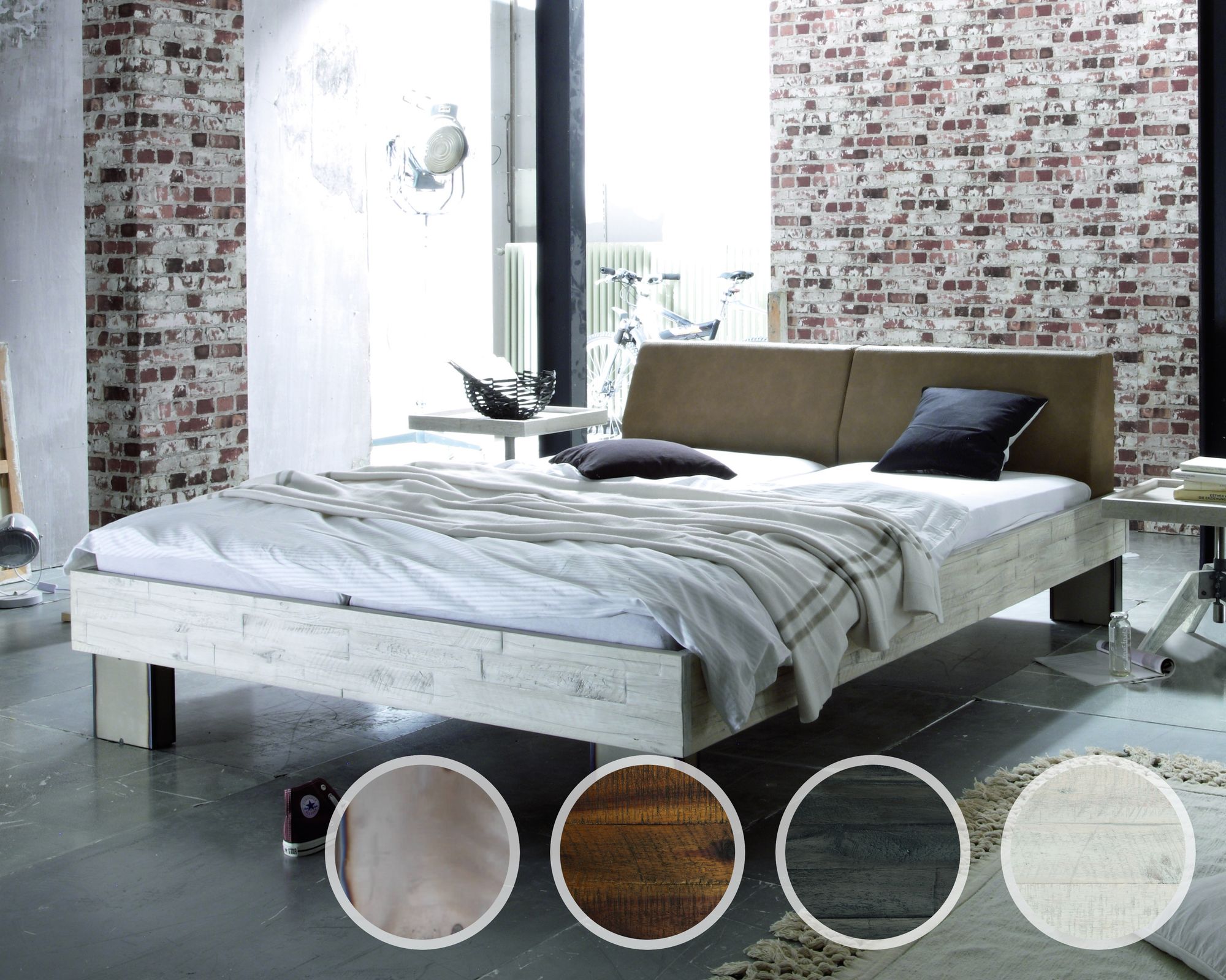 Hasena Factory-Line Massivholzbett Loft Quada/Rena 120 cm / Akazie Vintage weiss, lackiert