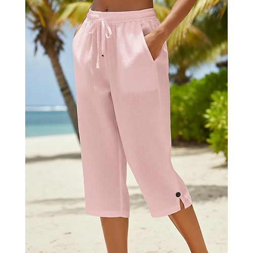 Per donna Pantaloni capri Chinos Streetwear Essenziale Casual Lunghezza al polpaccio Vita media Semplice Coulisse Tasca Comodo Elasticizzato Quotidiano All'aperto Streetwear Blu Bianco Rosa Arancione