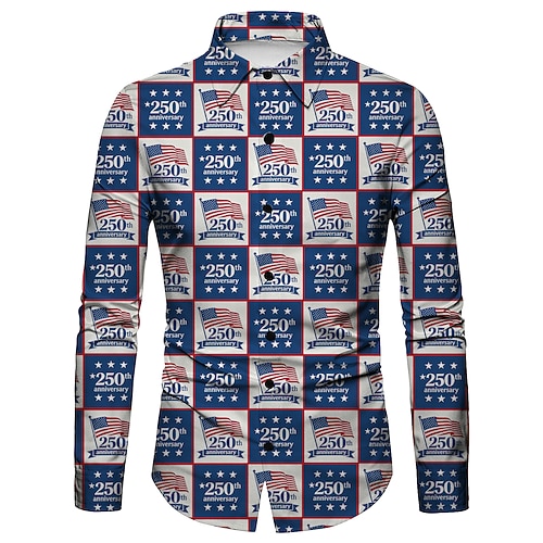 Americano 250 Retrò Vintage Anni '70 Camicia Camicia Aloha Lunghe Hippie Geometrico Etnico Costume Per uomo Mascherata 4 Luglio Feste Giorno dell'Indipendenza Semiquincentenario Adulti Camicia