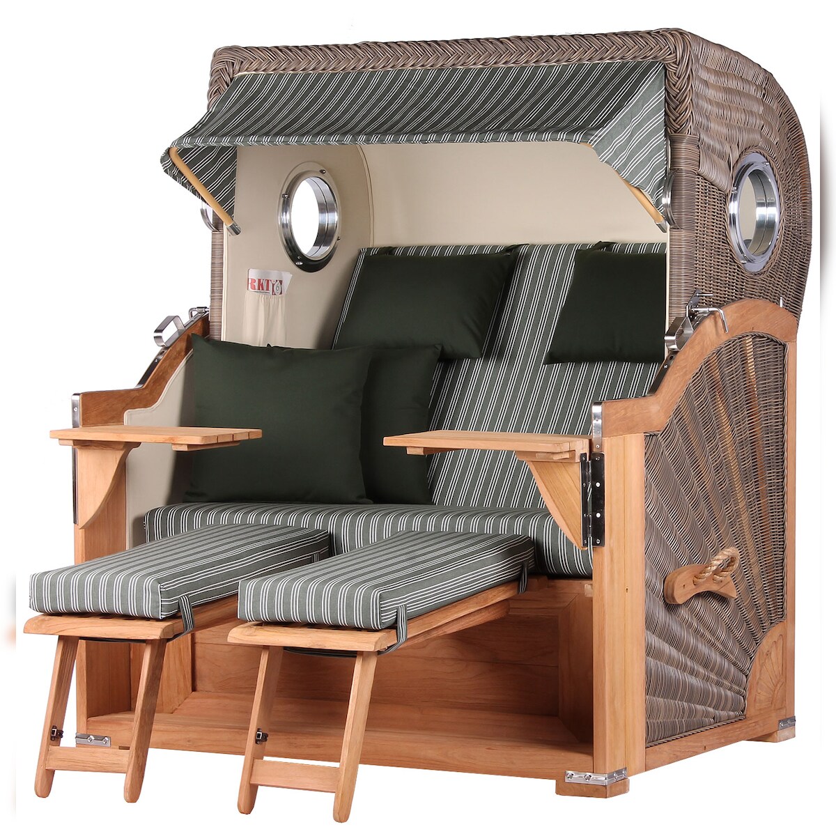 Mr. Deko Strandkorb - bene living - Königssee Teak Bullauge - PE grau - Modell 504 - inkl. Liftersystem