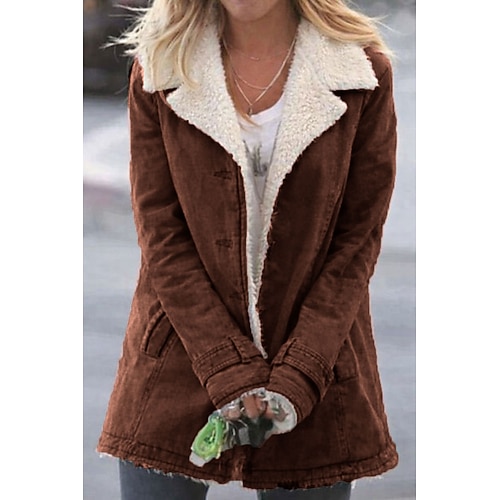 Per donna Cappotto Teddy Giacca Casual Confortevole Traspirante Tasca Bottoni Casual Semplice Vacanza Streetwear Casuale Abbigliamento quotidiano Monopetto Regolare Collo ripiegato Vestibilit
