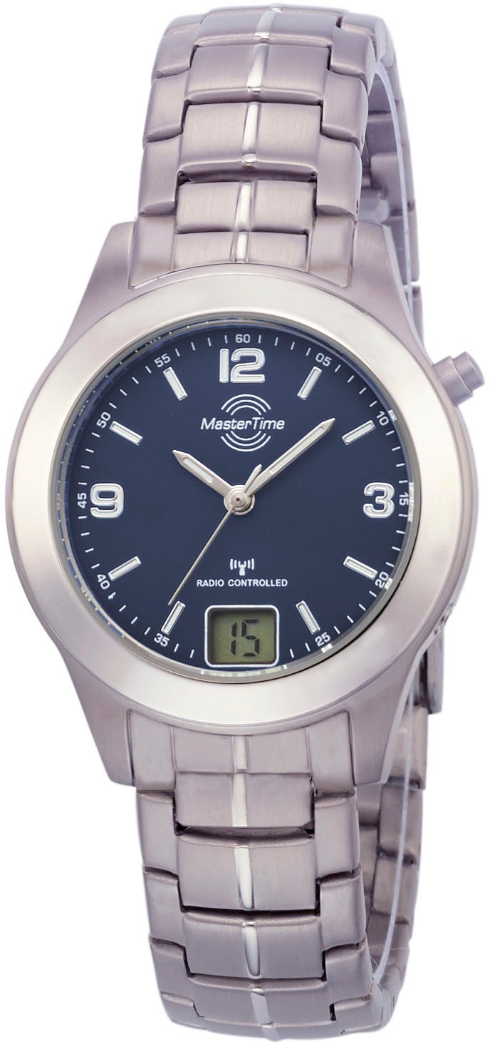 Funkuhr MASTER TIME "Titan, MTLT-10352-31M", grau (titansilberfarben), Armbanduhren, Damen, Armbanduhr, Quarzuhr, Damenuhr, Datum, Leuchtzeiger