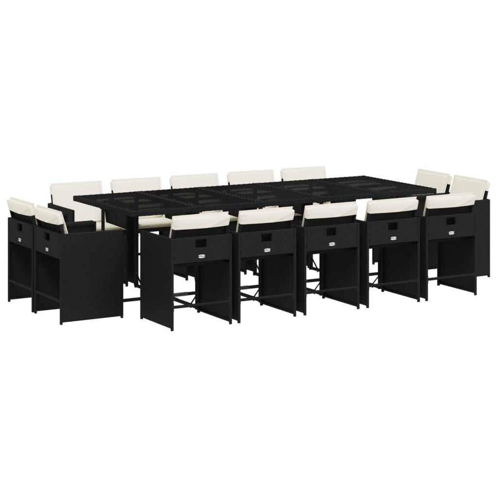 vidaXL 15-tlg. Garten-Essgruppe mit Kissen Schwarz Poly Rattan