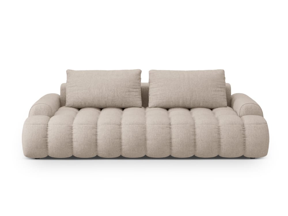 Divano convertibile con contenitore 4 posti tessuto strutturato sabbia