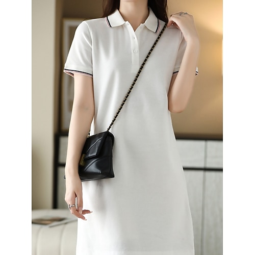 Per donna Mini Abito Abito a Tubino Casual Quotidiano Vestibilità regolare Semplice Manica Corta Bavero Nero Bianco Rosa Blu marino Estate Primavera