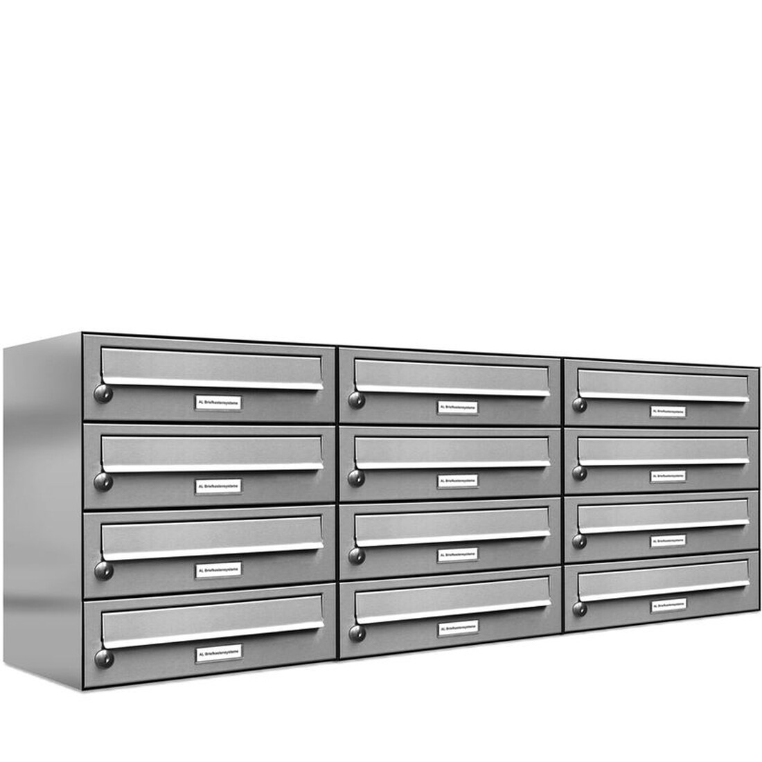 AL Briefkastensysteme 12 Fächer Premium Edelstahl Wand Briefkasten Anlage für Post A4, modern, robust und wetterfest, Artikelnummer: 132V12EA3