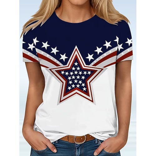 Giorno dell'Indipendenza Americana Per donna Maglietta Grafico Bandiera Stella Vintage Moda Elegante Manica Corta Girocollo Top Regolari Quotidiano Weekend Stampato Blu Rosso Grigio scuro Estate