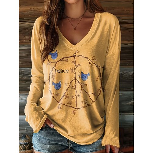 Maglietta da Donna a Maniche Lunghe Grafica Lettera Vintage Stile Classico a Maniche Lunghe Collo a V Superiori Regolari Quotidiani Weekend Stampa Gialla Rosa Marrone Verde Primavera Autunno