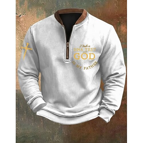 Per uomo Blocco di colori Citazioni Detti Felpa Moda Streetwear Quotidiano Classico Manica Lunga Zip a un quarto All'aperto Uscire Festival Nero Bianco Stampa Autunno progettista S M L XL 2XL 3XL