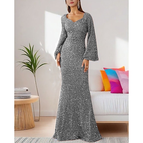 Per donna Abito Lungo Maxi Abito Abito con Paillettes Abito da Cocktail Tubino Elegante Moda Moderno Manica del polsino svasato Festa serale Feste Occasione speciale Vestibilità regolare Semplice