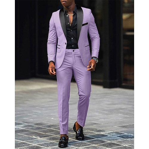 Per uomo Blazer pantaloni eleganti Blazer Completi Affari Cocktail party Ricevimento di matrimonio 2 pezzi Moda Casual Primavera Autunno Poliestere Blocco di colori Tasca Bottoni Confortevole