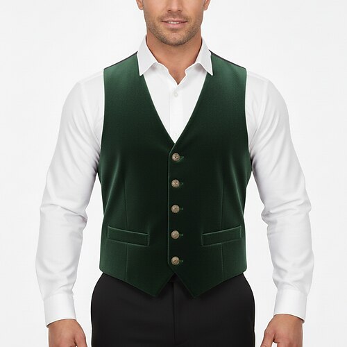 Gilet casual da uomo con revers a V, nero bordeaux, formale, tinta unita, vestibilità su misura