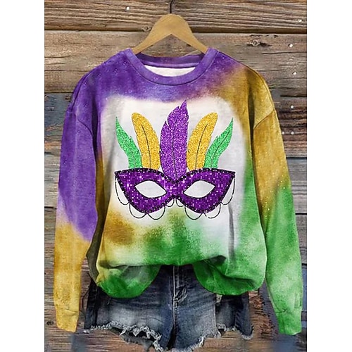 Felpa da Donna Carnival Graphic Albero di Natale Casual Maniche Lunghe Collo Tondo Tops Regolari Casual Street Dailywear Gialla Viola Verde Primavera Autunno Inverno