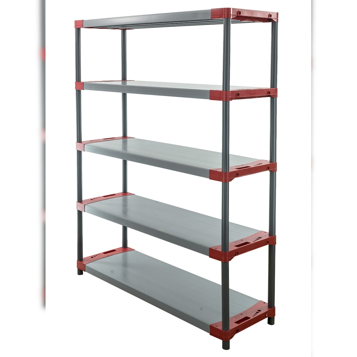 PROREGAL Kunststoffregal BIG GREY BEAR Tall, HxBxT 180x140x46cm, Fachlast 120kg, Grau-Rot Kunststoff-Regal Euro-Regal Stecksystem Lagerregal