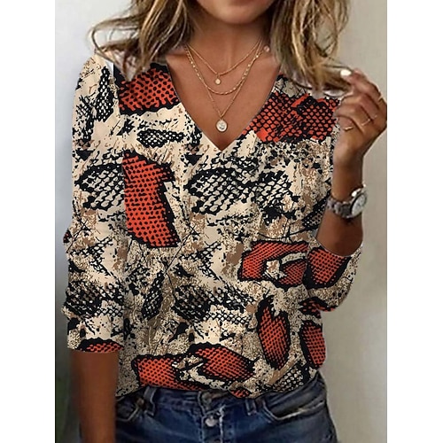Per donna maglietta Liscio Di tendenza Moderno Informale Manica corta Manica a sbuffo A V Top regolari Giornaliero Fine settimana Retato Collage Nero Bianco Blu Arancione Verde Estate Primavera