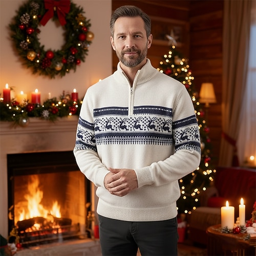 Per uomo Maglione di Natale Maglioni di Natale Maglione per le feste Maglione Maglioni con zip a un quarto A Coste Maglia Top Regolari Lavorato a maglia Zip a un quarto Ogni Zip a un quarto Moda