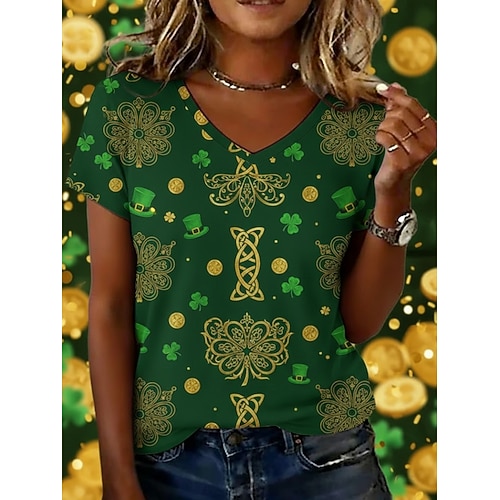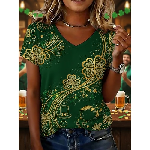 Camicia da donna per il giorno di San Patrizio con trifoglio quotidiana maniche corte maniche a sbuffo colletto della camicia top lunghi quotidiani verde erba estate primavera