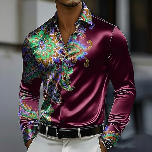 Per uomo Paisley Stampa Floreale Fiori Camicia Camicia in raso Camicia elegante Manica Lunga Vintage Retrò Vacanza Abbigliamento Quotidiano Estate Primavera Autunno Collo ripiegato Stampa 3D Camicie