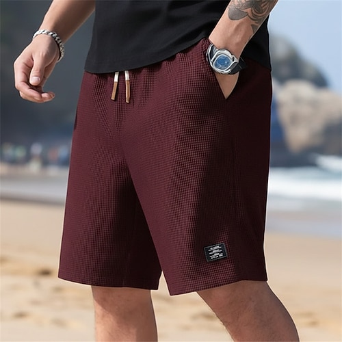 Per uomo Pantaloncini Waffle Pantaloncini Estivi Shorts da Spiaggia Pantaloncini casual Pantaloncini strutturati Coulisse Elastico in vita Tinta unica Comodità Lunghezza al ginocchio Quotidiano