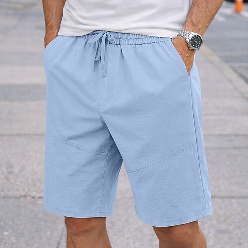 Per uomo Pantaloncini Pantaloncini di lino Pantaloncini estivi Pantaloncini da spiaggia Tasche A cordoncino Vita elastica Banda Comfort Traspirante Lunghezza del ginocchio Esterno Per eventi Spiaggia