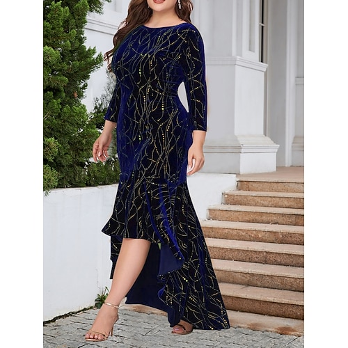 Per donna Taglie Forti Abito in Velluto Grafico Girocollo Manica Lunga Primavera Autunno Elegante Moda Moderno Abito lungo maxi Formale Natale Vestito