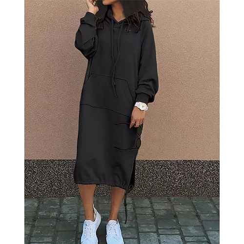 Per donna Abito Lungo Maxi Abito Abito con Cappuccio Vestito Casual Abito Invernale Elegante Moda Moderno Quotidiano All'aperto Abito Invernale Vestibilità comoda Semplice Manica Lunga Con Cappuccio