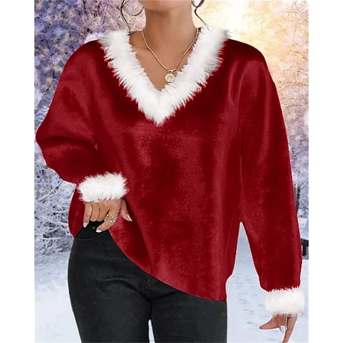 Natale Per donna Velluto Blusa Top Eleganti Semplice Elegante Vintage Carino Manica Lunga Scollo a V Top Regolari Lavoro Quotidiano Ferie Arricciato Patchwork Drappeggiato Blu Rosso Verde Autunno
