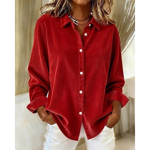 Per donna Camicia Velluto Elegant Elegante Tinta unica Elegante Manica Lunga Colletto a Camicia Top Regolari Lavoro Ferie Uscire Tasca Bottoni Verde militare Fucsia Marrone Primavera Autunno