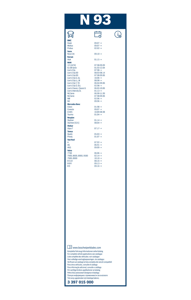 BOSCH Wischblatt 3 397 015 000 Universal Bügelwischblatt ohne Spoiler für DAF MERCEDES-BENZ MAN VOLVO 4058200645 1517872 0018200745