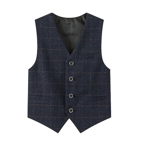Bambini Ragazzi Gilet Capispalla Plaid Senza Maniche Tasca Scollo a V Bottoni Cappotto All'aperto Moda Cool Quotidiano Blu Nero Blu marino Primavera Autunno 4-12 Anni