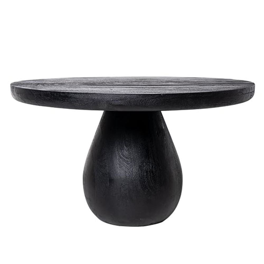 Tavolino rotondo in legno di mango, nero, abbinabile, 80 cm