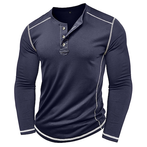 Per uomo Maglia Henley Camicia 100% cotone lavaggio acido Manica Lunga Henley Primavera Autunno Tutte le stagioni Vintage Retrò Vintage Casual Stile Vintage Lavato Casuale Blu Marrone Grigio