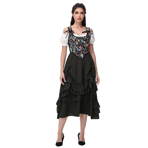 Retrò Vintage Medievale Rinascimento Vestito Corsetto Bustino Allacciato Floreale Jacquard Costume Per donna Celtico Fantasia Halloween Carnevale Feste Casual Quotidiano LARP Adulti Corsetto