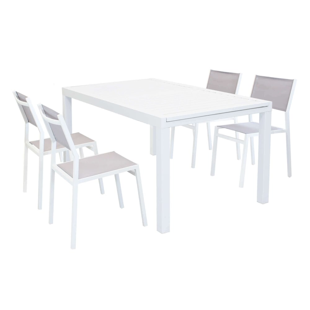 Set tavolo con 4 sedie in alluminio/textilene bianco 90x240x75