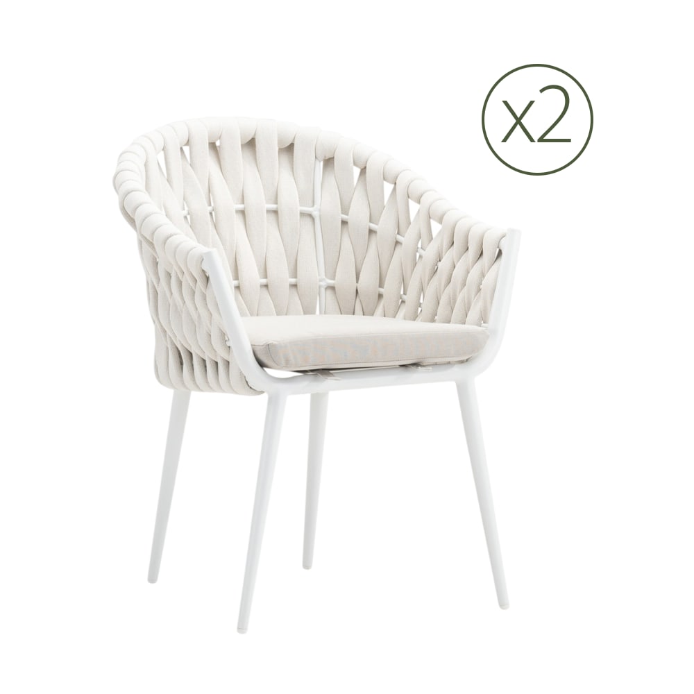 Set di 2 sedie in alluminio bianco e textilene con cuscino
